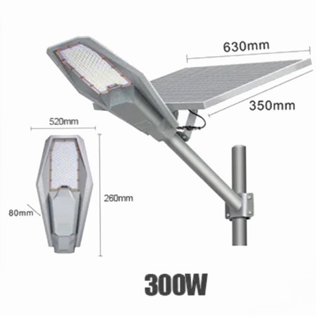 چراغ خورشیدی خیابانی با پنل جدا-300 واتGreat Solar یکی از بهترین پروژکتورهای خیابانی موجود در بازار هستند. در این پروژکتورها، پنل خورشیدی از باتری جدا است و یک پک کامل از پنل 35 وات، باتری 30 آمپر لیتیومی، بدنه فلزی و جنس بدنه پروژکتور دایکاست آلومینیوم است.چراغ خورشیدی خیابانی با پنل جدا-300 واتGreat Solar دارای ریموت کنترل هستند و همچنین شامل بازوی ۱/۵ اینچ، یک متری هستند که هم پنل و هم پروژکتور در درون آن قرار میگیرد. پروژکتورهای خیابانی 300 وات IP67 هستند و در مقابل بارش برف و باران کاملا مقاوم هستند. این پروژکتورها پخش نور بسیار بالایی دارند.در صورتی که این پروژکتور را در ارتفاع ۶ متری نصب شوند قابلیت روشن کردن تا شعاع 15 متر را دارند. یعنی مساحتی معادل ۲۰۰ متر مربع را روشن میکنند. و در روشنایی خیابانی بسیار مناسب هستند.