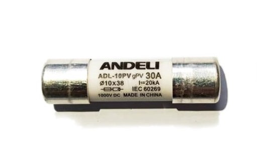 فیوز گچی 30 آمپر سایز 10در38 مدل ADL-10PV برند ANDELI1000V-DCیک فیوز الکتریکی با کیفیت و کارآمد است که بهطور ویژه برای محافظت از مدارهای DC (جریان مستقیم) طراحی شده است. این فیوزها میتوانند در برابر جریانهای اضافی از تجهیزات و مدارهای برقی محافظت کنند، بهویژه در سیستمهای انرژی خورشیدی و سایر سیستمهای باتریدار. بستهبندی 5 عددی این محصول به شما این امکان را میدهد که چندین مدار را بهطور همزمان محافظت کنید.آمپر نامی: 30 آمپر – محافظت از مدار در برابر جریانهای بالا. نوع جریان: DC (جریان مستقیم) – مناسب برای سیستمهای خورشیدی، باتریها و تجهیزات DC. مدل فیوز: طراحیشده با تکنولوژی مدرن برای افزایش ایمنی و کارایی. تعداد در بسته: 5 عدد – برای استفاده در چندین سیستم یا بهعنوان جایگزین. به صورت تک موجوده جنس بدنه: مقاوم در برابر حرارت و فشار، ساخته شده از مواد با کیفیت بالا. کاربرد: محافظت از مدارهای الکتریکی DC در برابر اضافه بار و اتصالات کوتاه.